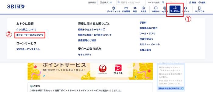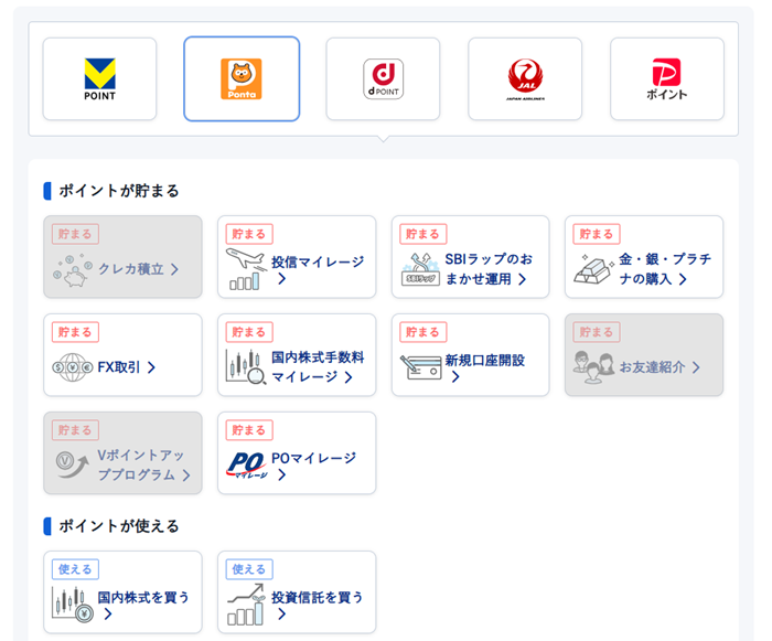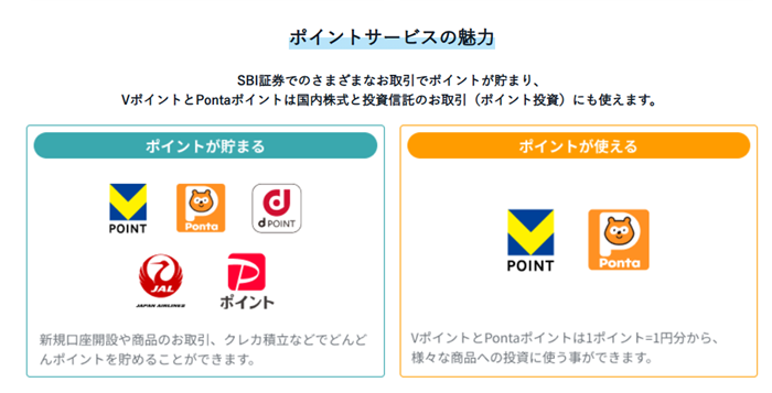 SBI証券では、投資をしながらポイントが貯まるサービスがあります。